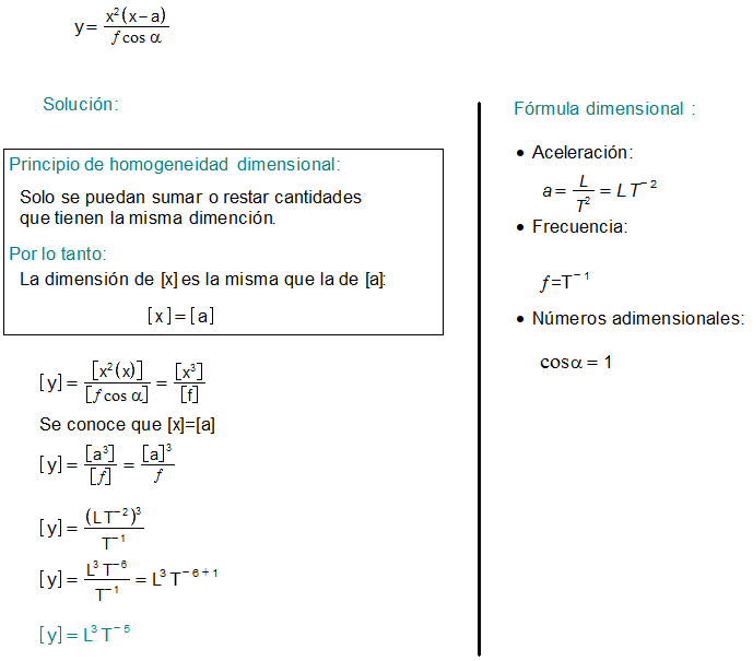 En la ecuación y=\frac{x^{2}\left ( x-a \right )}{fcos(\alpha)} ‘a’ es una aceleración y ‘f’ es una frecuencia. La dimensión de ‘y’ es:
