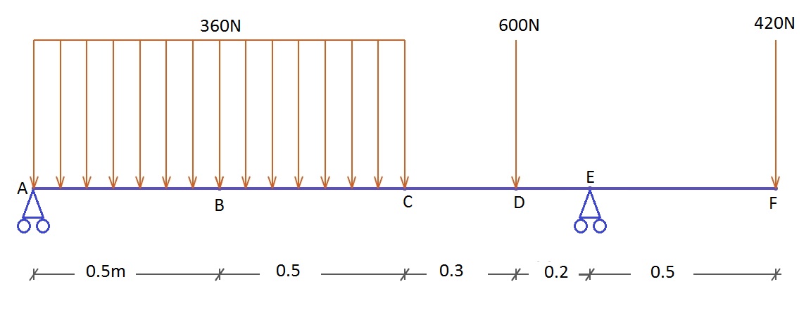 1. Hallar los diagramas de fuerza cortante y momento flector